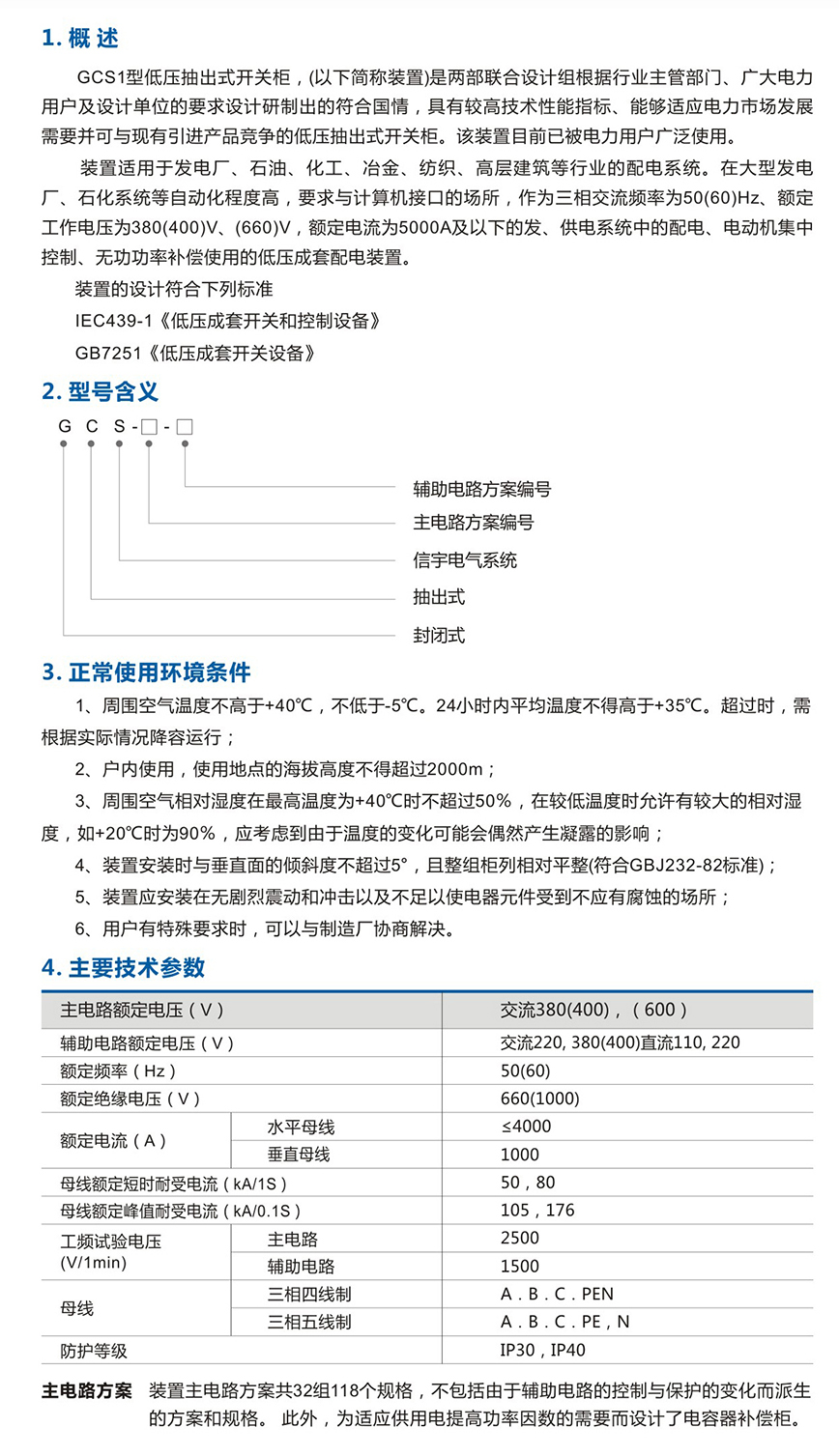 GCS低压抽出式开关柜