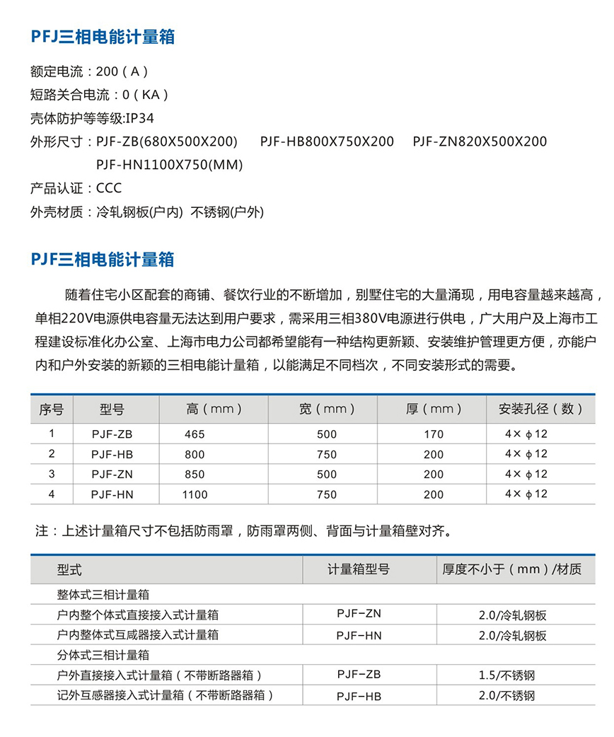 PJF三相电能计量箱